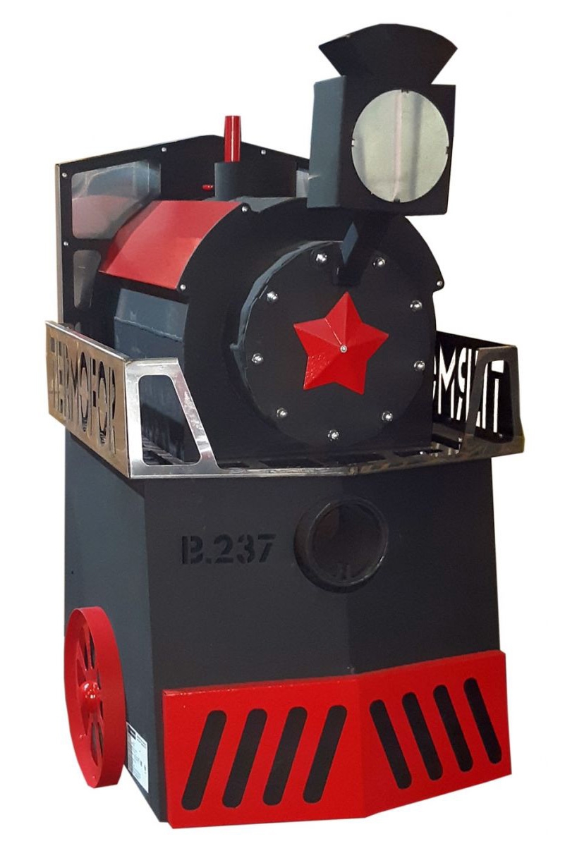 Комплектация: печь «Паровоз 18‑26 плазма» с выносным топливным каналом, паровозным свистком, «паровозной фарой», выдвижным зольником, колосниковой решёткой из чугуна, кожухом‑конвектором.