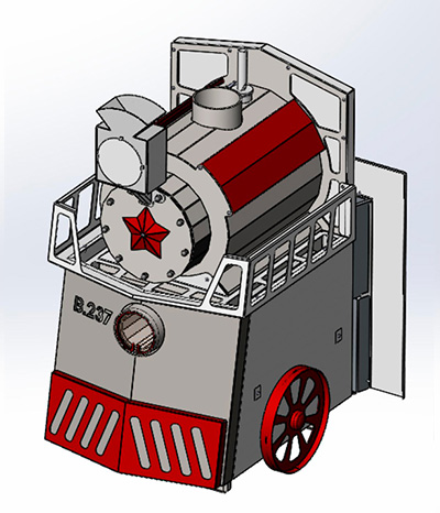 Комплектация: печь «Паровоз 18‑26», чугунная дверца со стеклом, выносной топливный канал, колосниковая решётка, выдвижной зольный ящик.
